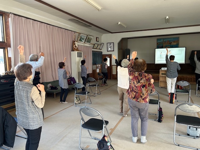 11月11日(火)10時から北支部たんぽぽ班が牟佐公民館で班会を開催しました。体操教室では、ラジオ体操第1から始まり、ストレッチや様々な体操をしています。第4火曜日には、協立病院の理学療法士によるストレッチを行っています。12月9日(火)10時からは、楽しい棒体操を行います。ご参加お待ちしています。