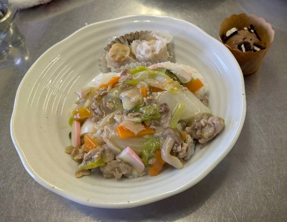 今月は21日に開催しました。メニューは中華丼・シュウマイ・オレオケーキでした。