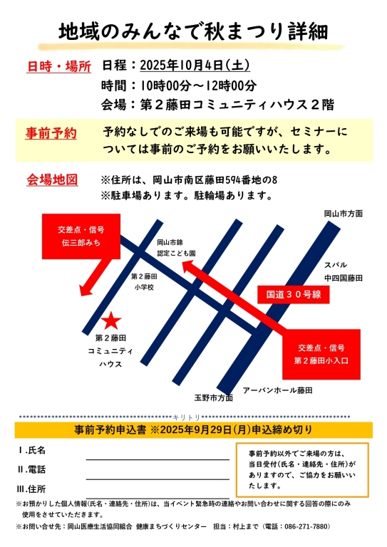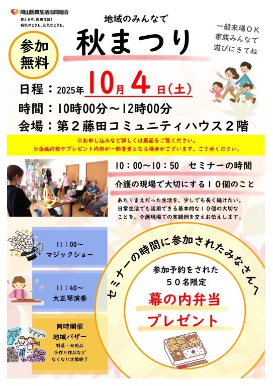 お問い合わせ先:岡山医療生協健康まちづくりセンター/086-271-7880