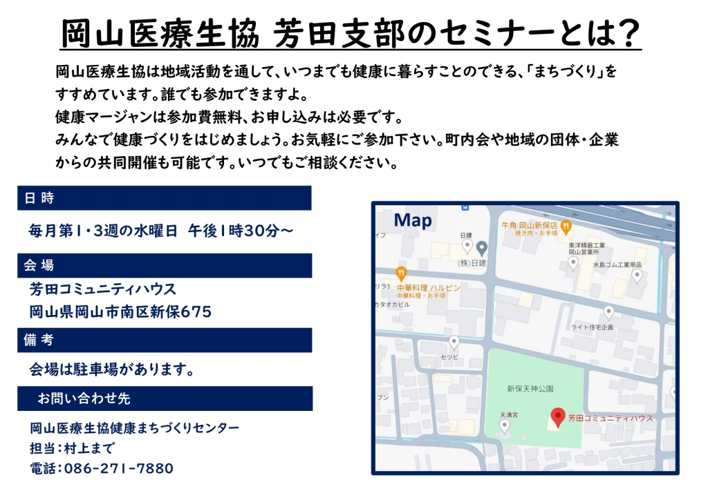 お問い合わせ先:岡山医療生協健康まちづくりセンター/086-271-7880