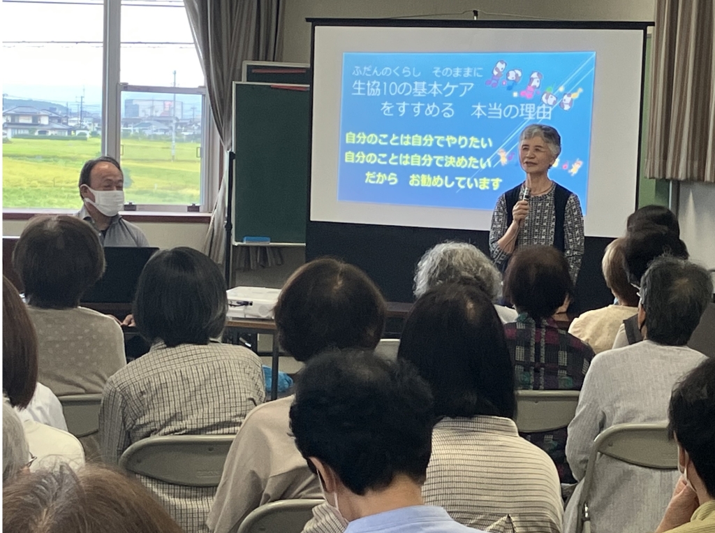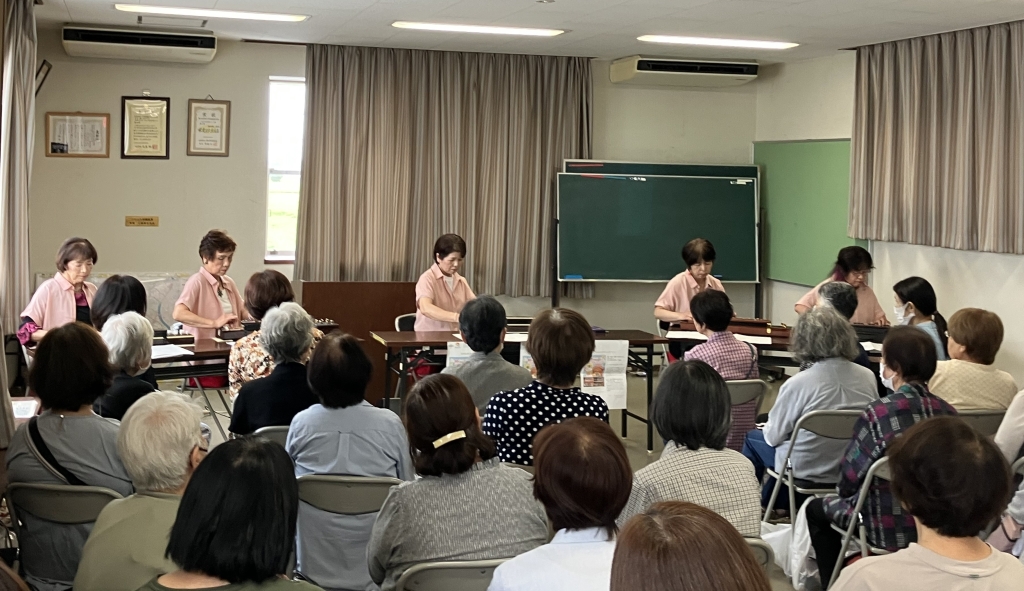 10月4日(土)、岡山市南区の藤田支部・興除支部・妹尾支部・岡山医療生協の介護事業部が企画した秋まつりを開催しました!今回は、興除支部から声をかけていただいた大正琴サークルの演奏、藤田支部が調整してくださったマジシャンの手品、そして介護事業部から自宅でも取り組むことのできる「生協10の基本ケア」の講演の3本の企画を実施しました。そのほかにも、各支部からのお楽しみ企画(シークレット企画)もあり、会場も満席(60席)、来場者も満足との感想もいただきました。