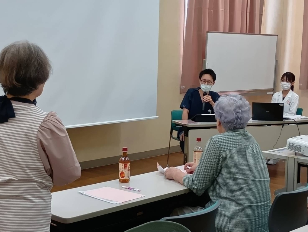 講師の岡山協立病院の岡本管理栄養士から、野菜の摂取目標量や緑黄色野菜のメリット、効果的な調理方法などをクイズも交えて楽しく学びました。今年度新たに導入した、ベジミル(緑黄色野菜摂取測定器)測定も実施しました。たくさん野菜を摂っているのに低かったと測定結果に一喜一憂する参加者もおられました。当日は研修医の田野先生も参加いただき、簡単な自己紹介と食に関する情報としてビタミンDと認知症リスクについて教えていただきました。今後も「食」をテーマにした保健講座を開催予定で、第2弾は「たんぱく質のはなし(仮)」を2026年2月26日(木)に予定しています。