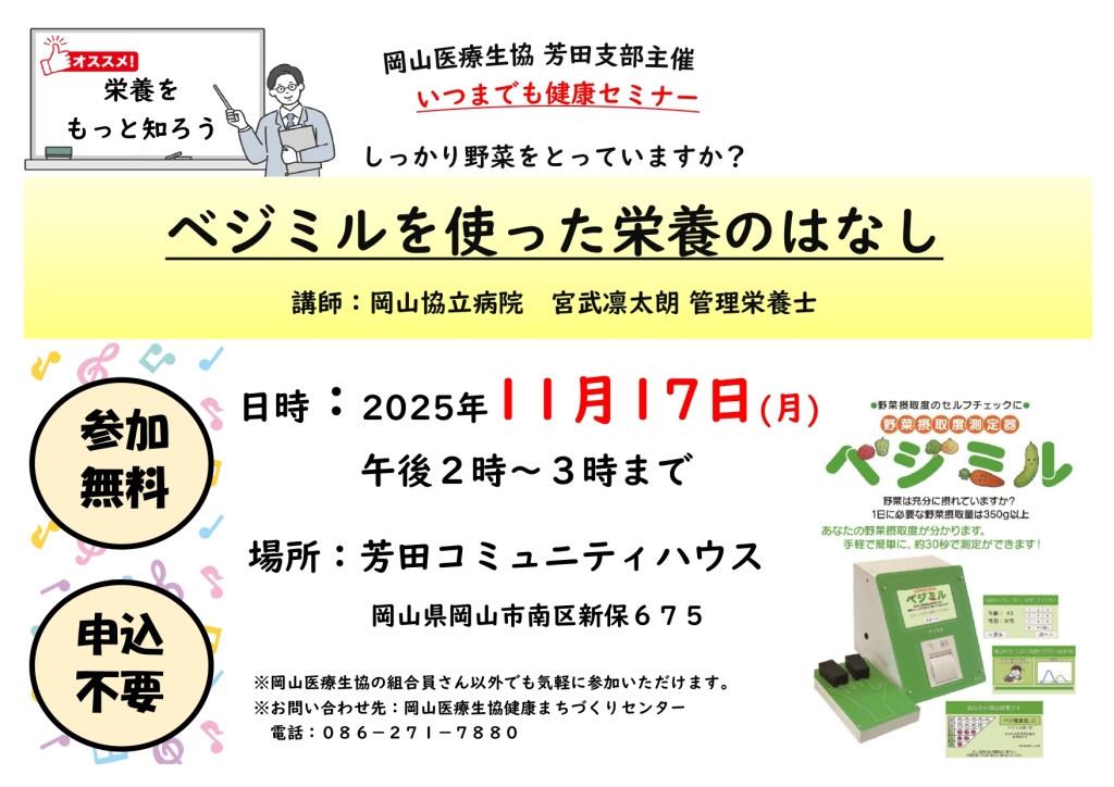 お問い合わせ先:岡山医療生協健康まちづくりセンター/086-271-7880