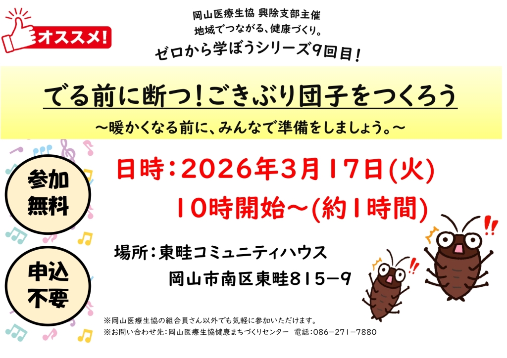 お問い合わせ先:岡山医療生協健康まちづくりセンター/086-271-7880