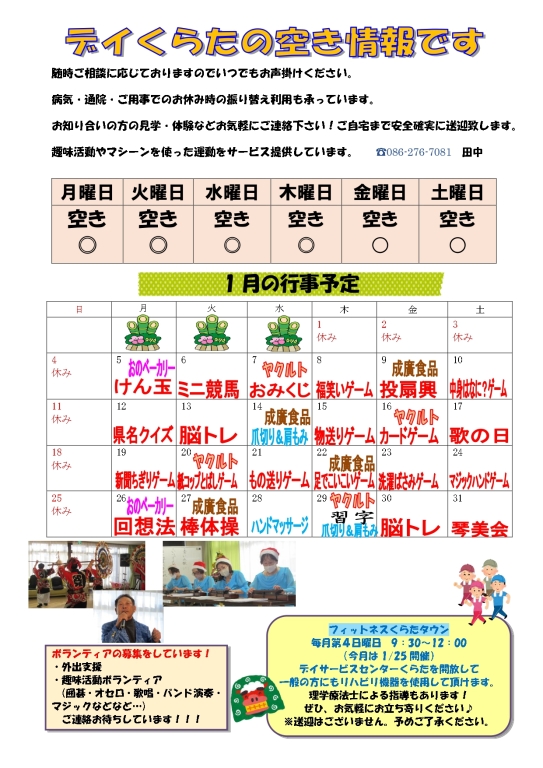 皆様のご利用を職員一同お待ちしております!お問い合わせは下記までお電話ください。