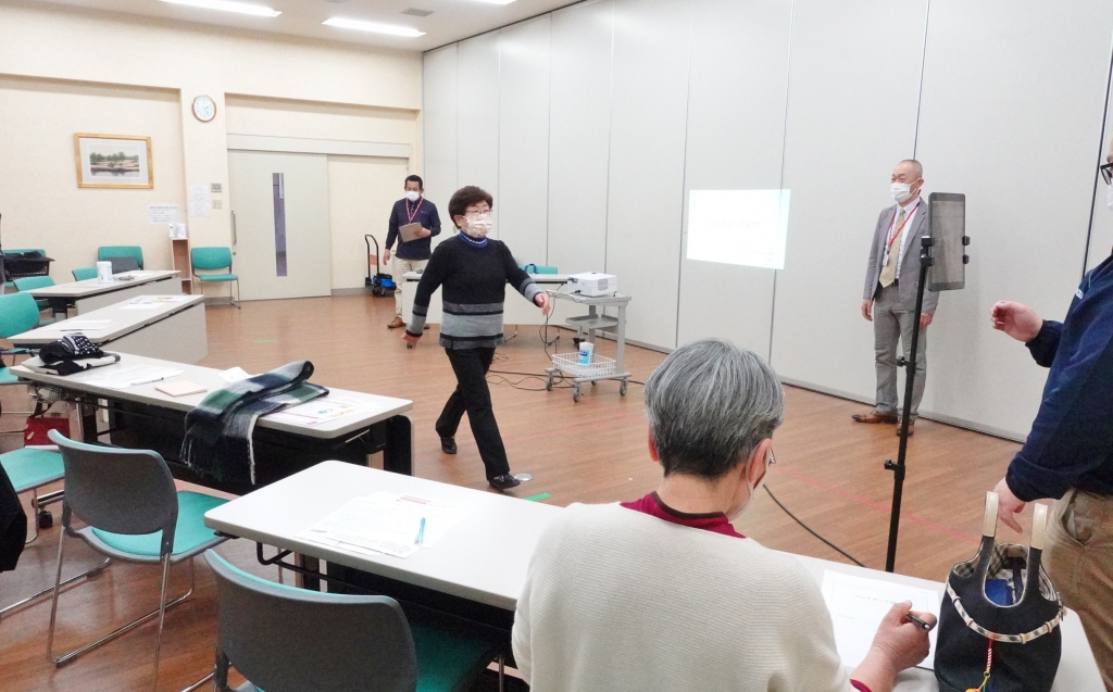 岡山医療生協では地域での活動も活発です。今回は、岡山市中区にある富山支部「ライラック班」主催の提携店コラボート企画をお伝えします。今回はなんと!「健康チェック」+岡山協立病院の作業療法士を講師に迎えた「フレイル学習会」+岡山医療生協組合員カード提携店のフレアス在宅マッサージ岡山東区施術所・倉敷施術所を迎えた「身体の傾きあなたはどっち?姿勢の歪み測定会」を開催しました。最近話題のテーマ「フレイル(病気ではないけれど、年齢とともに筋力や心身の活力が低下し介護が必要になりやすい、健康と要介護の間の虚弱な状態)」。地域のみんなんで学び、自分自身の状態を知ることのできる学習会となりました。フレアス在宅マッサージの姿勢の歪み測定会では、5m歩くだけで姿勢の歪みが点数化されるシステムに皆さん驚かれていました!