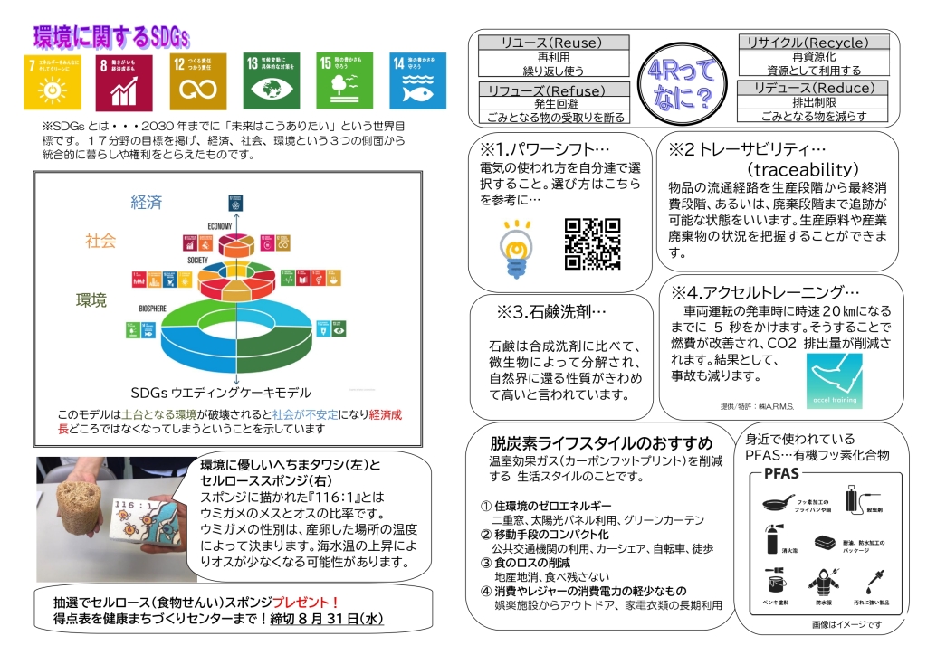 グローバル・グリーン・アンド・ヘルシー・ホスピタルズ)に加盟した岡山協立病院の視点を加えた内容です。個人や学校・職場・お友達同士、組合員さんであれば班や支部など、みんなで活用していただきたい内容です。今年度も、抽選でセルローススポンジをプレゼントします。生活の見直しや新たな発見にもつながる企画です。ぜひご参加ください。