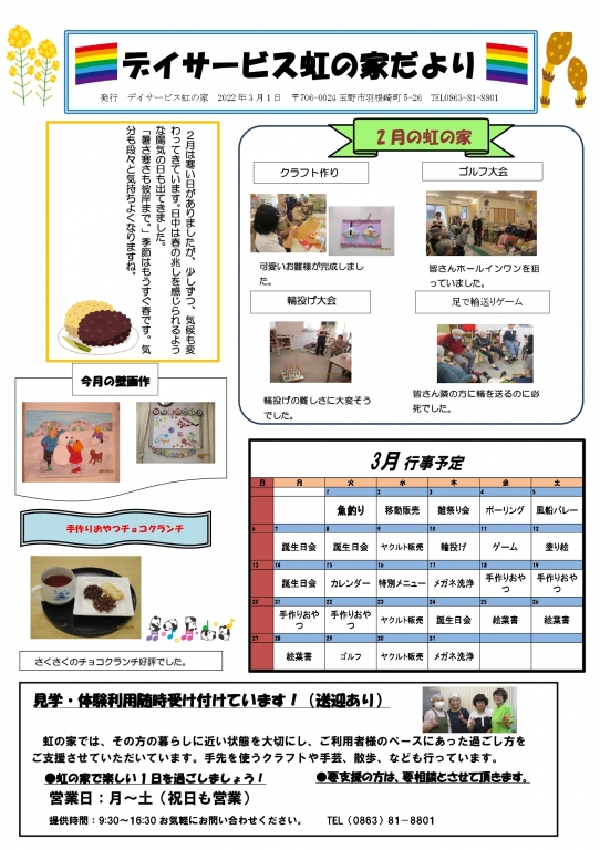 【デイサービス虹の家】機関紙/3月最新号のお知らせ